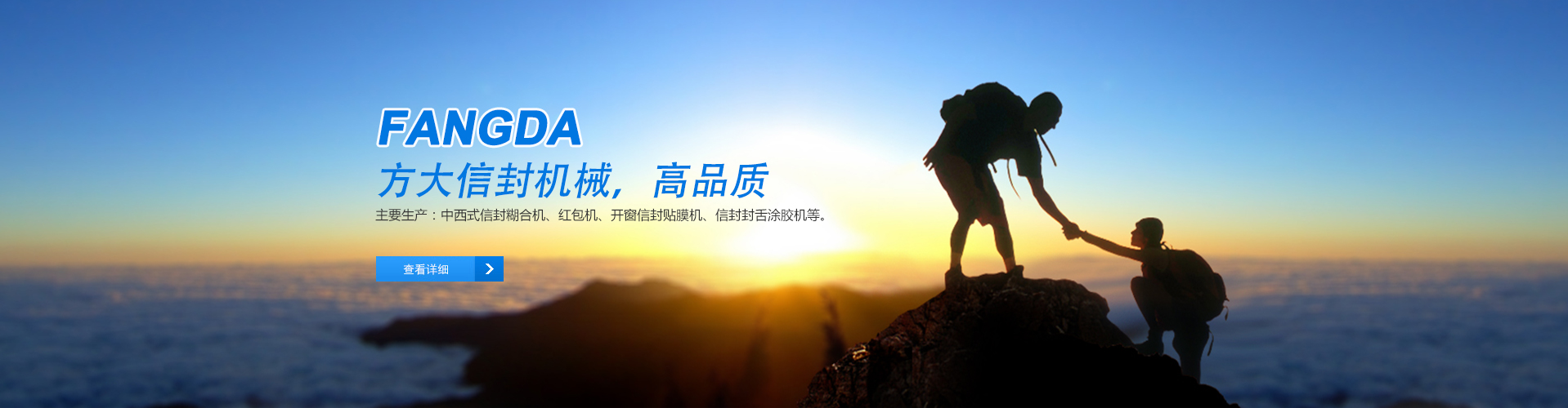 瑞安方大信封機械有限公司,是專業(yè)生產(chǎn)信封機糊合設(shè)備系列產(chǎn)品的企業(yè),主要產(chǎn)品有:中西式信封糊合機、紅包機、開窗信封貼膜機、信封封舌涂膠機等。實力來自規(guī)模,品質(zhì)源自專業(yè)。我廠擁有專業(yè)老練的工程設(shè)計人員,經(jīng)驗豐富的生產(chǎn)安裝人員,嚴謹認真的質(zhì)量檢驗人員,從而保證了所生產(chǎn)機械的優(yōu)良品質(zhì)。此外,我廠也將從技術(shù)上、性能上不斷改進提高,以更好的滿足客戶的需求。“客戶至上,服務(wù)為本”是我廠長期一貫的服務(wù)理念,從安裝、測試、保養(yǎng)、維修等售后服務(wù),我們會給予客戶充足的信息資訊與技術(shù)支持,因此在業(yè)界獲得良好的口碑及信譽,您的滿意是我們的榮耀!歡迎您來電查詢、來人參觀,我們一定能給你滿意的答復(fù)!秉承“顧客至上,銳意進取”的經(jīng)營理念,堅持“客戶為先”的原則為廣大客戶提供溫馨的服務(wù)。歡迎惠顧!